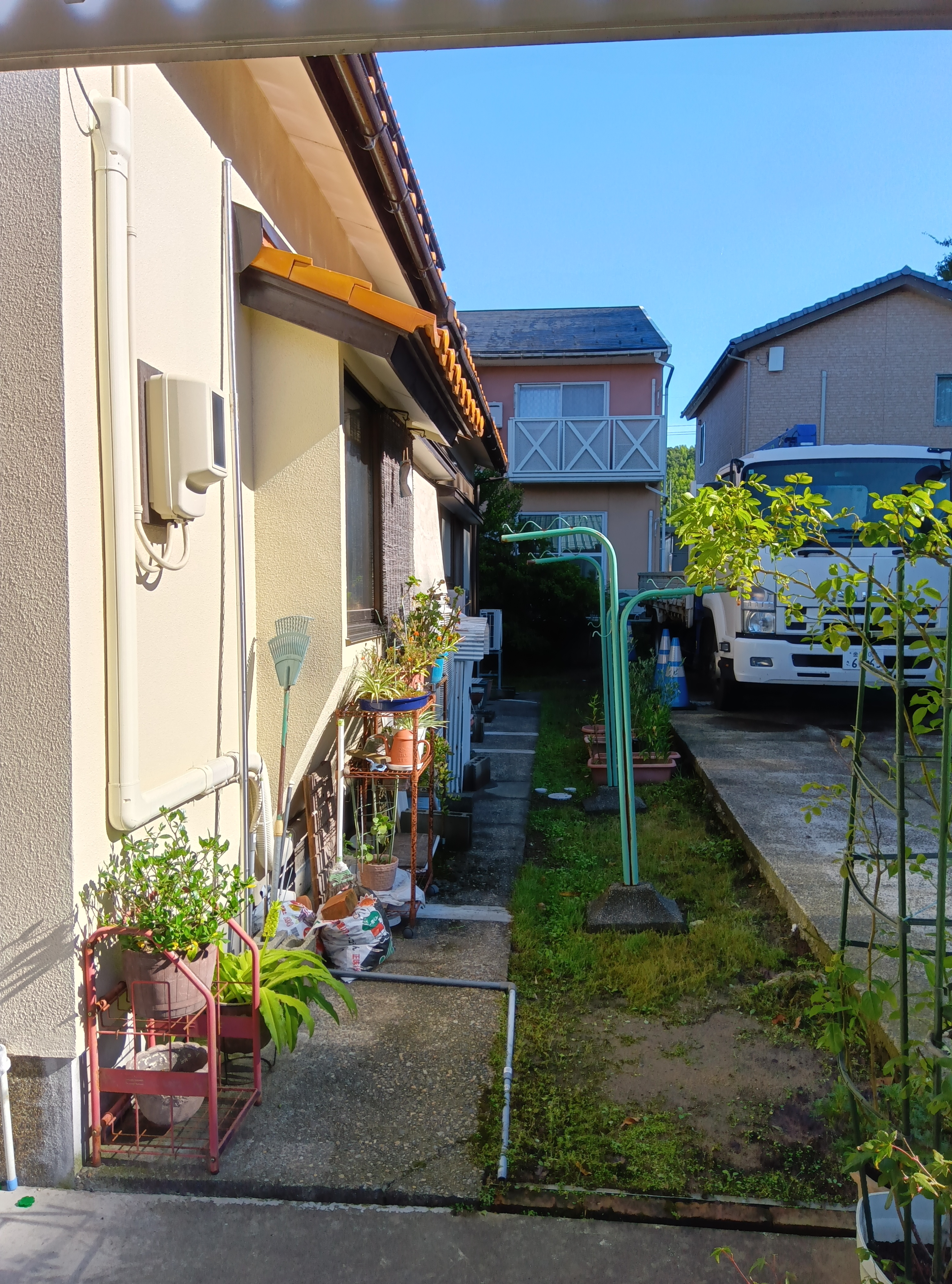 雑草対策に防草シートを敷いて砂利敷に。